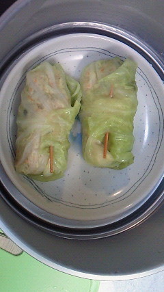 そしてロールキャベツを煮込まないで、蒸す方が10分程度で火が通ってラク♪