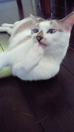 前足をナメナメしつつ、フィニッシュに爪をガジガジしているブルー。
