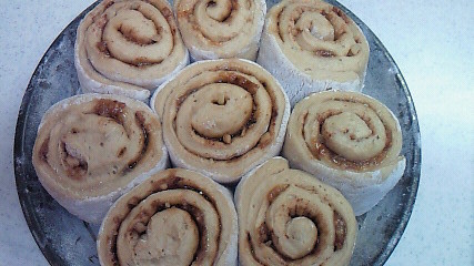 生地:ロールパンメニューで捏ね→1次発酵までホームベーカリーにお任せ。