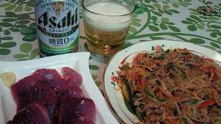 今夜のおかずはナスと鶏肉の煮込みと昨日の残りのゴーヤチャンプル。