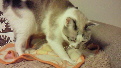 日焼けしたのか、家の床の色が付いたのか…コゲちゃったけどにゃ…