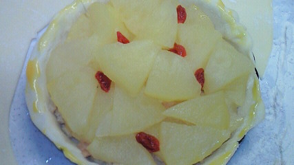 パイ皿が中サイズが無いので大きい皿に合わせて延ばしたら薄くなった。(ノД`)