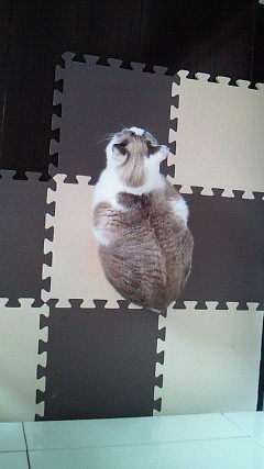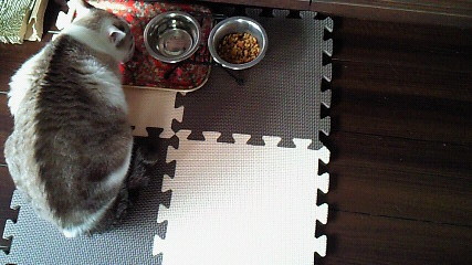 昨夜のキッチンで↑私が何かしている時に以前よりこのマットの上に居るのは