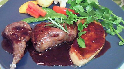 肉に合う甘めのフルーティーなソースにした。(鹿・ラム・フォアグラ全部同じソース)