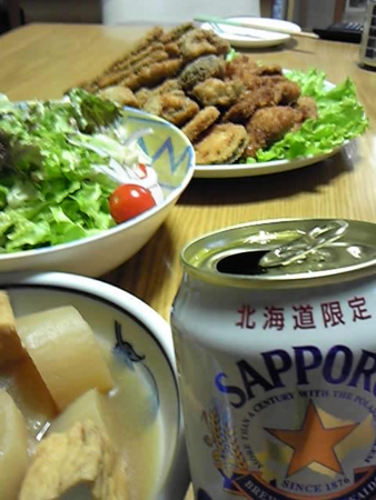 喉の奥がイガイガするのをビールで洗い流します。
