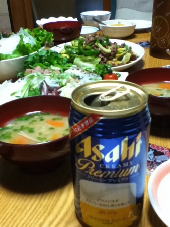 鰹のたたきを肴にアサヒ クリーミープレミアムをいただきます。