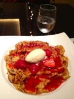 ソースはイチゴにバニラシュガーを加え、ブランデーでフランベしたものです。