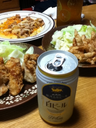 鶏ももと軟骨の唐揚げをツマミに銀河高原白ビールをいただきます。