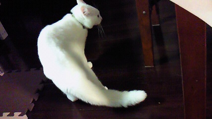 嫌々やられながらも…ちょっと気持ちイイ。だから前足をエアフミフミするよ♪( ´ー`)