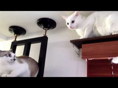 \ うわっ!もう来た!/ \ さーて、遊ぼうにゃっ!/