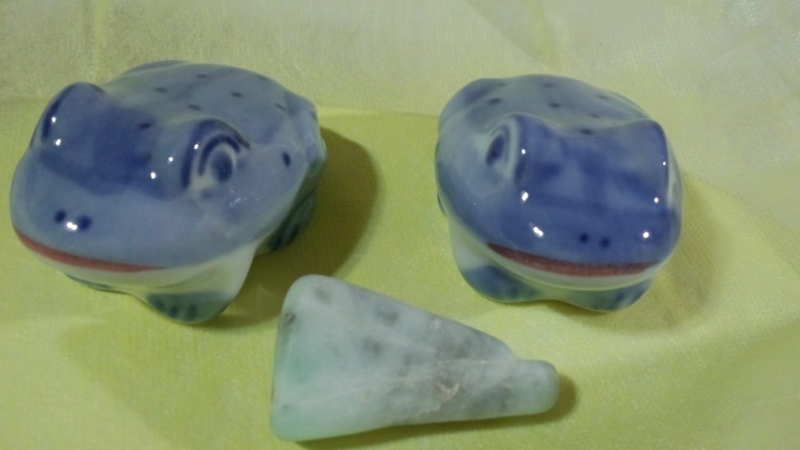 可愛い美濃焼きのカエルに間にあるのは、糸魚川の翡翠。