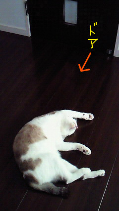 コイツってばドアの開閉半径に当たらない手前に 常に寝転んでいる!∑(=゚ω゚=;)