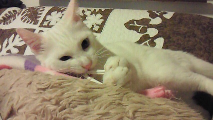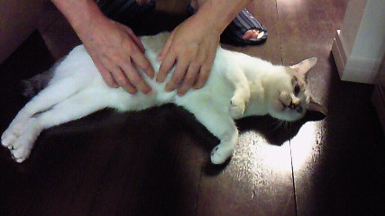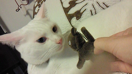 【動きたくないけど、遊んでくれにゃー】(トーコを釣る)