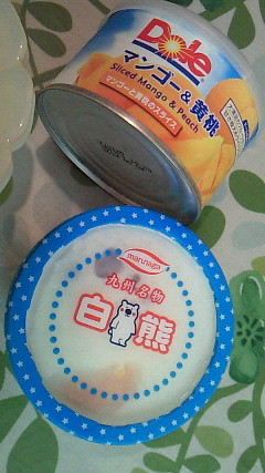 白玉を茹でて冷凍庫にあった白熊を載せて、氷白玉風にしてみました。( ´∀`)゚