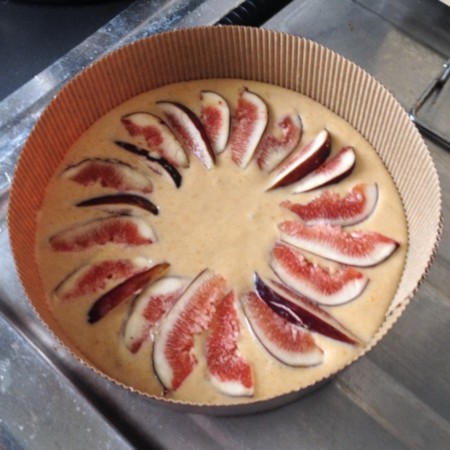 かぼちゃとシナモンのチーズケーキの上に、いちじくを載せて焼いてみた。初めての試み。