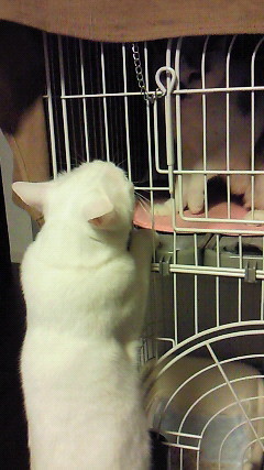 普通はケージに入るのは嫌だと思うけど、トーコ相手じゃ逃げるが勝ちなのね。