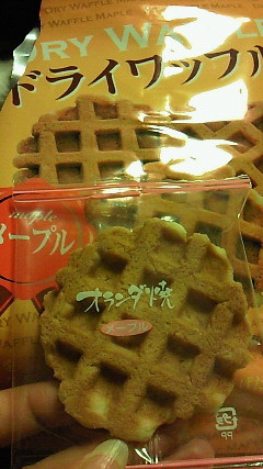このワッフル、形はワッフルだけど…洋風な味の瓦煎餅って硬さでした。( ´Α`)カター