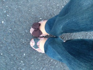 ベランダ用ったって、夏に部屋で履いてたスリッパ(い草のやつ)をベランダ用に下ろしたものだし、裸足なら足の感覚でわかるけど、ソックス履いてるとわからないんだもの。