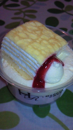 本当はソフトクリーム食べようと思ったけど、寒くてコレに。下は苺のムース。(^p^)