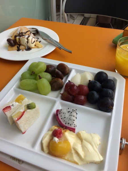 隣の娘さんたちの色鮮やかなお皿(ケーキがたくさんのってる)は眩しい。