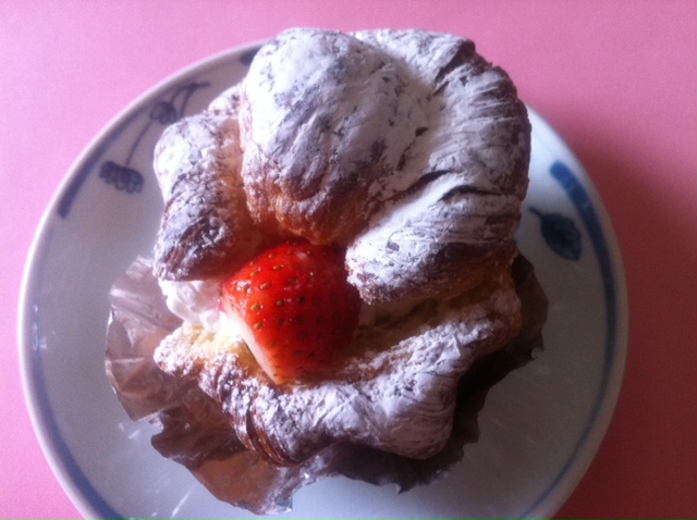 鈴カステラ風の生地にカスタードクリームが入ったお菓子でした。