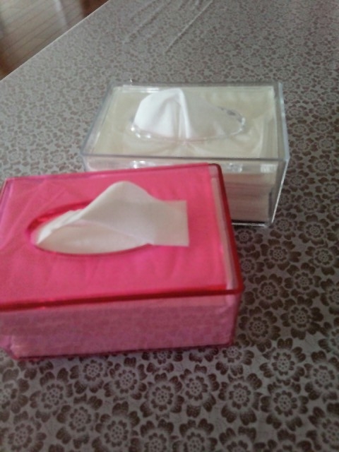 ポケットティッシュが売るほどたまってるので100均でケースを買ってテーブルに置いてみました