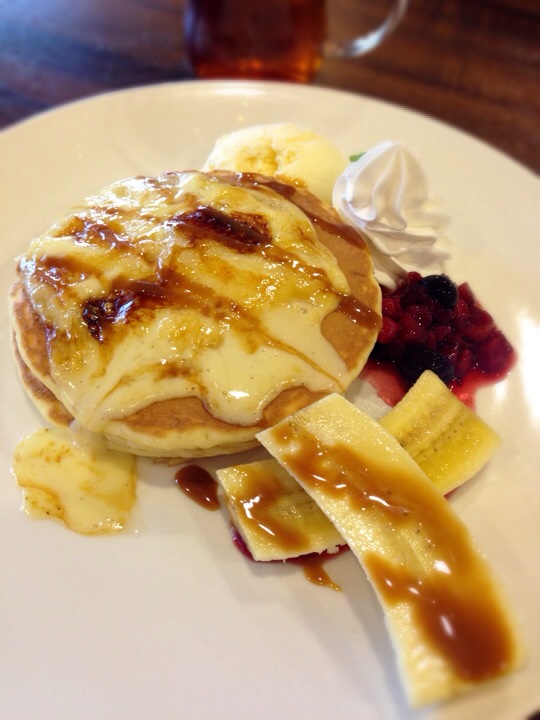 ジョナサンで、キャラメル&バナナのクレームブリュレパンケーキをいただきました。