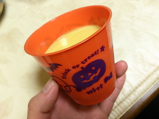 ハロウィンのカボチャプリンだけど日付変わっちゃってるから20周年祝いのプリンとする!