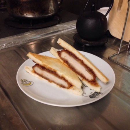 コンビニのカツサンドをトースト! 電子レンジにかける目安時間が書いてあるけど、電子レンジはパンがへにょっとしちゃうからね。