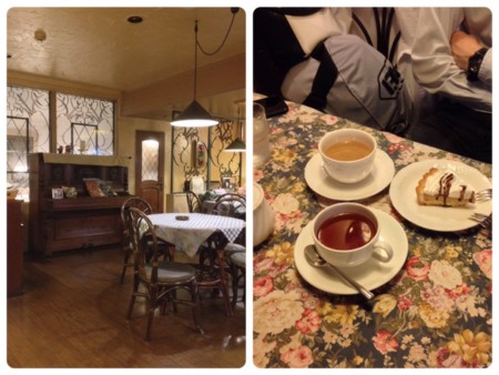 おやつというか、デザート。紅茶のお店でカレーのあとに。間仕切りや窓枠の鉄線装飾は人参の形、で英国風、だけどピーターラビットは飾られてなかった。