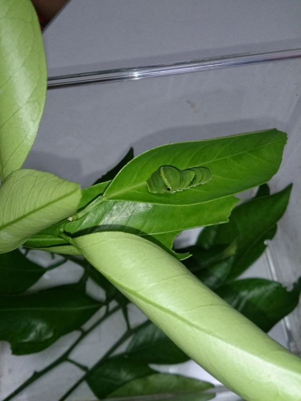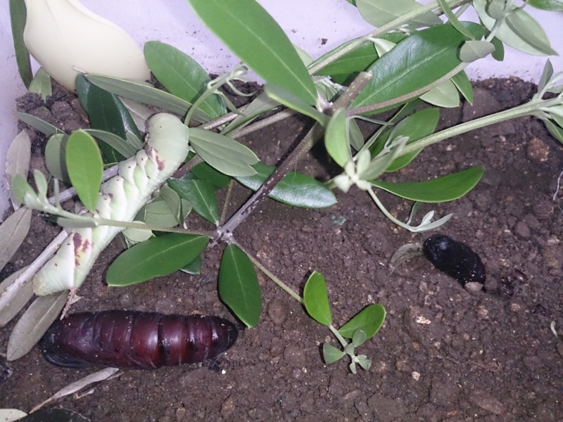 朝になったら色が変わってたので、そろそろサナギになるのかと土を入れてやったら潜っていきました