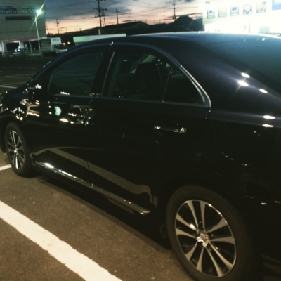 諸般の事情により加工して黒っぽくあげてますけどもこれ紫色なの。内装もステッチも所々に紫色が配されて俺は確かカタギの人間だったはずなんだが…て気分になった。やっぱ例のカツラとネクタイでドライブすべきだった。まぁ彼は運転なんかしないだろうしあくまで勝手なイメージですけども。