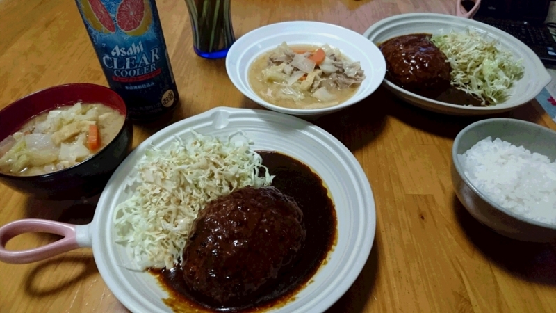 金のハンバーグだ~!豚汁作って