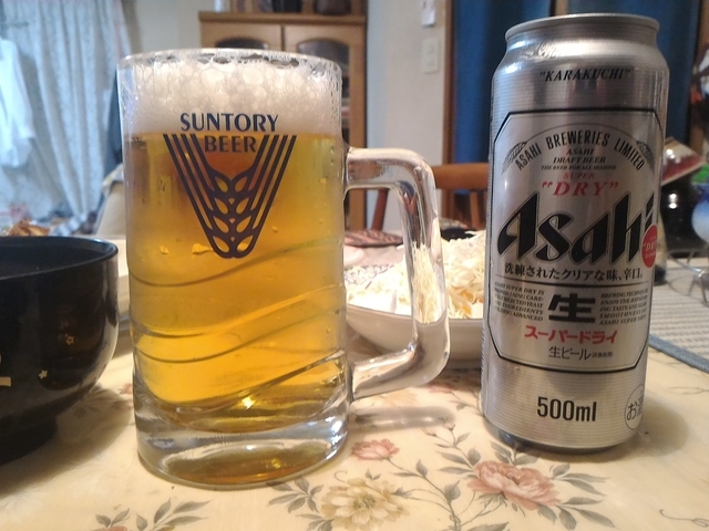 コンビニ飯を肴にサントリー金のビールをいただきます。