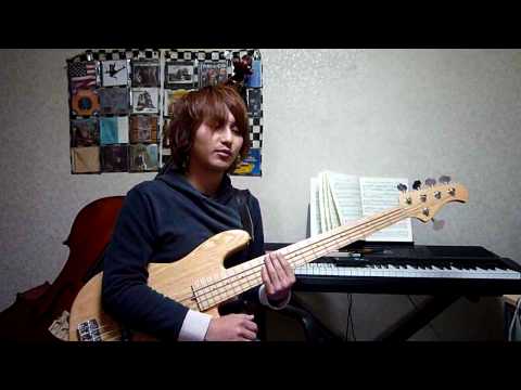 今日はこの、スネ夫のテーマ(?)のシンセベースを4弦ベースでコピーしました。