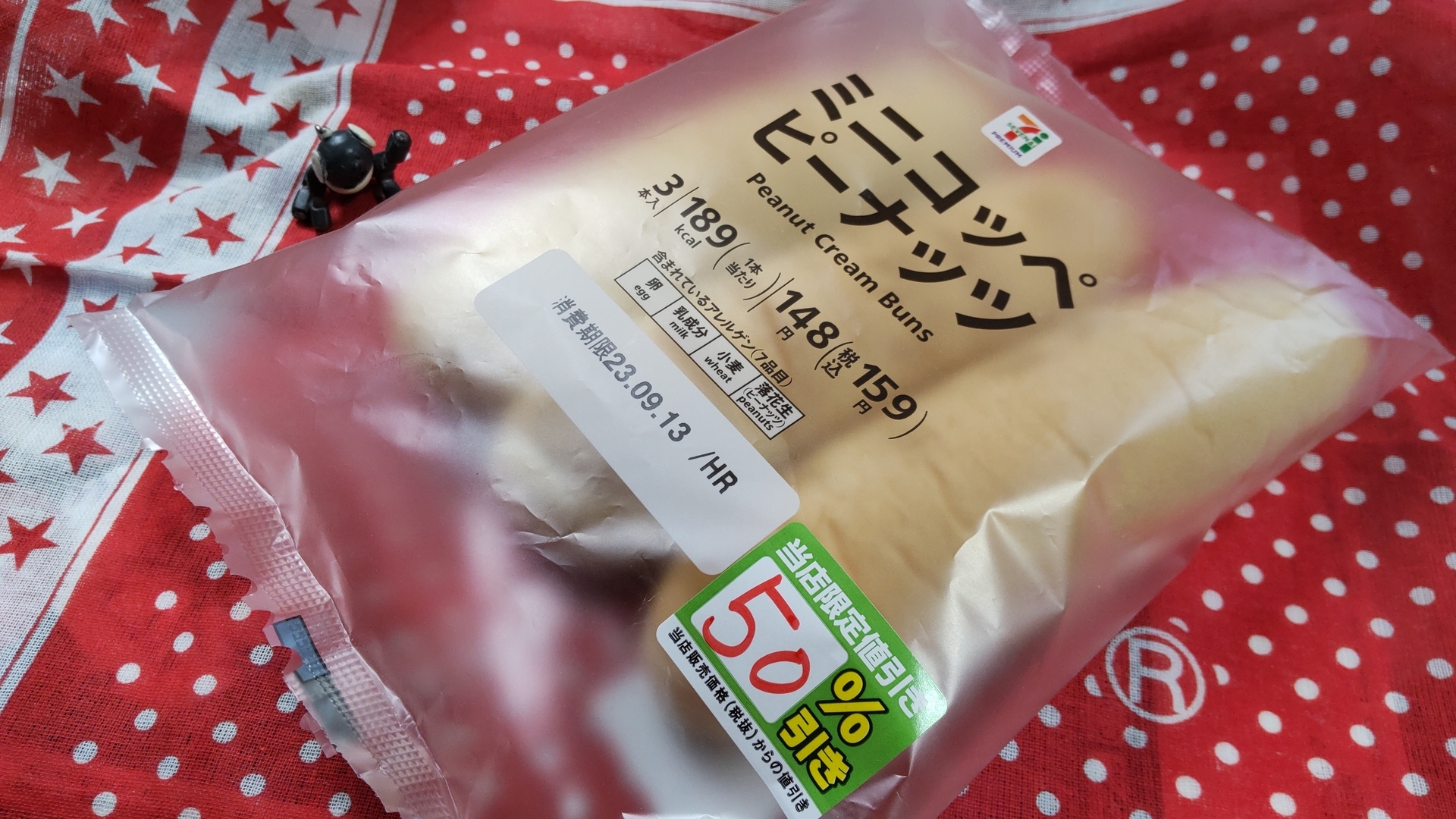 「ミニコッペピーナッツ」。三個入り。ピーナツバター的なやつがわずかながら粒入りで食感よし。でも二本に減らしていいからピナバタ的なやつをもっと多めにしてほしい。半額は蜜の味。