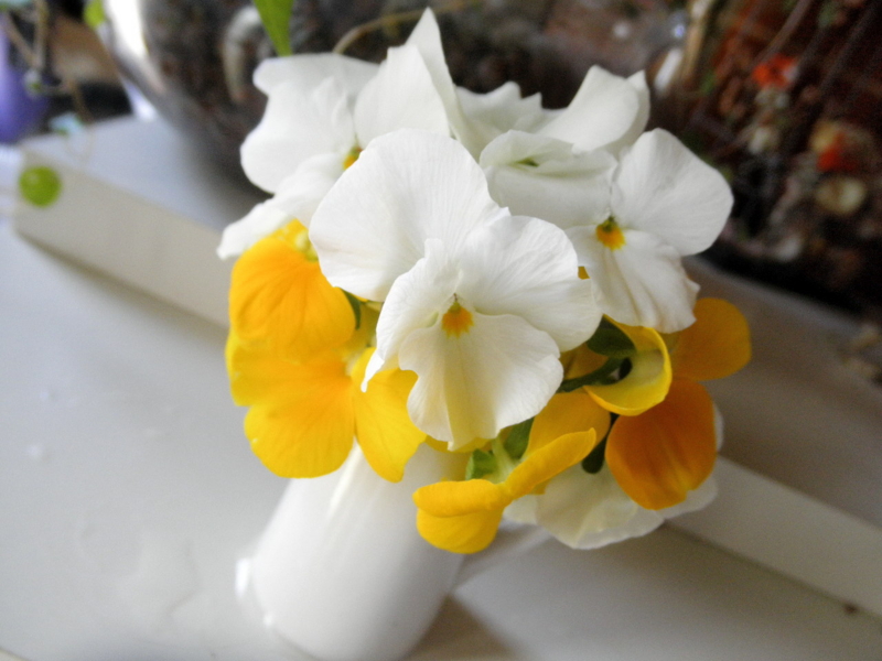 我が家の花達。 寄せ植えで使ったハボタン。 蘭のエビネ。地植えでほとんど世話をしてませんが、毎年咲きます。 同じく蘭の、マキシラリアのバリアビリス「Max. variabilis」。 パンジーを小瓶に大盛り。
