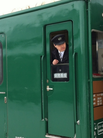 車掌「すぐ出発だから乗ってください。三号車が自由席です。」