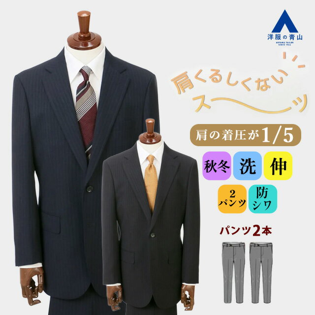 - 【洋服の青山】2パンツ 肩くるしくないスーツ メン…