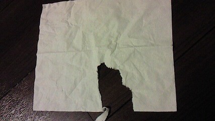 昨日帰宅したら、2枚のティッシュが落ちてた。
