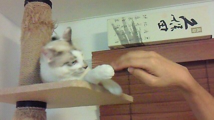 ダンナがタワーの上で待ってる猫のお相手をしてあげてた。 ~(=^・。・^)ノ"