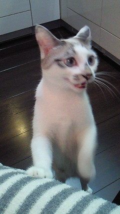 晩御飯を作ってる最中…自分のエサ待ちで付きまとう。 (ーー:)