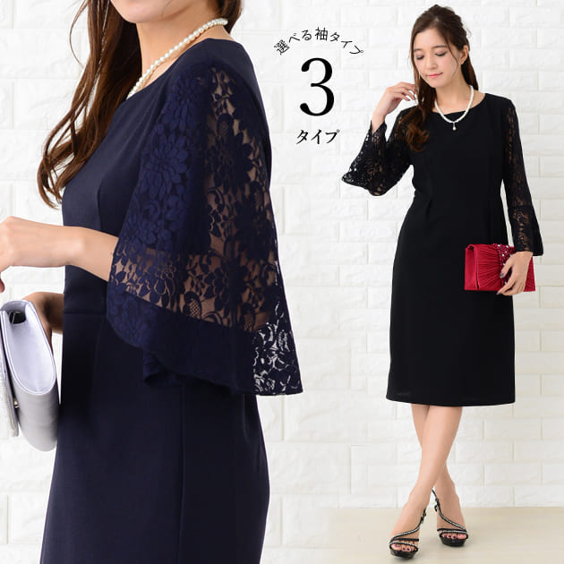 - レース袖 シフォン袖 レースフレア袖 膝下丈 パー…