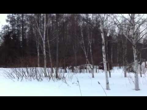 画面中央にピョンピョンと去っていくエゾシカが見えますか?