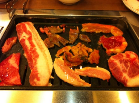 お父さんがためてくれたマイルで韓国ソウルに行っている娘から焼き肉の写メが届きました。