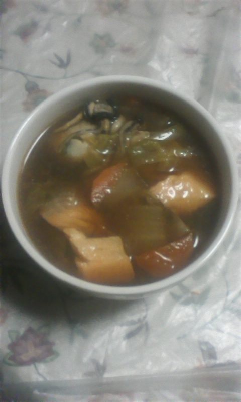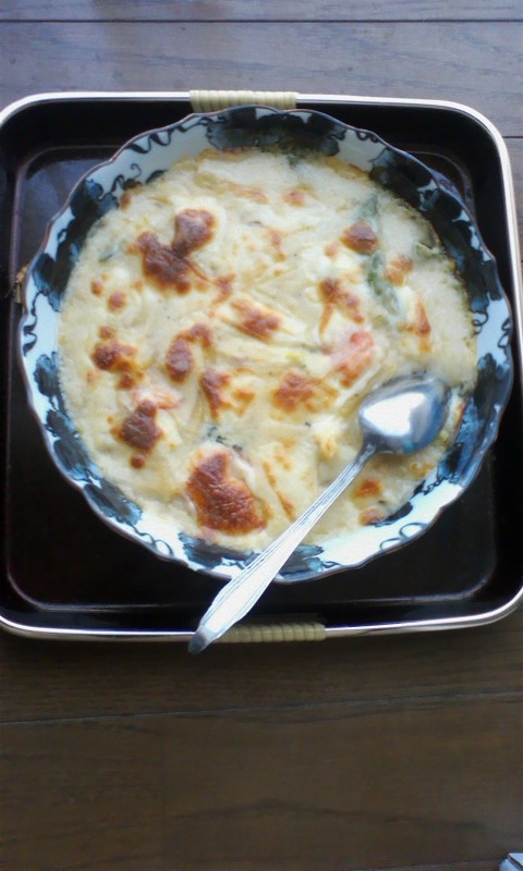開けたての味噌を使った寄せ鍋。鮭だから石狩かな。鶏胸肉も入れた。