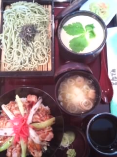 ランチの鳥丼とそば、セットでジャンボ茶碗蒸し。