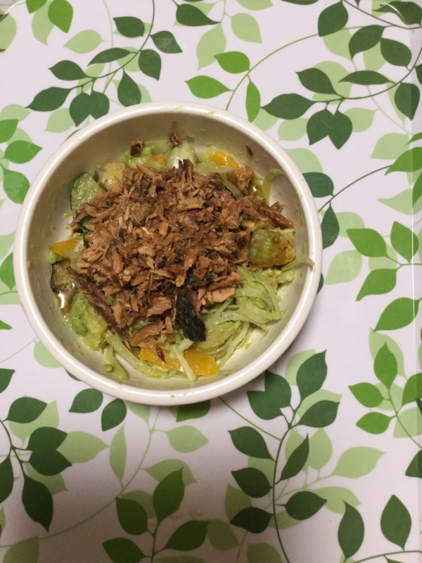 を差し引いて味付けした、アボカド玉ねぎサラダ。