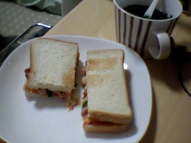 ピザ風ホットサンド。普段は、出来合いのピザソースととろけるス