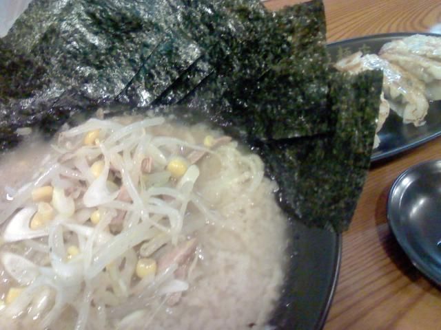 桑名市安永・川出拉麺店。餃子にでーかわ海苔ラーメン。見た目こってり、意外とあっさり。